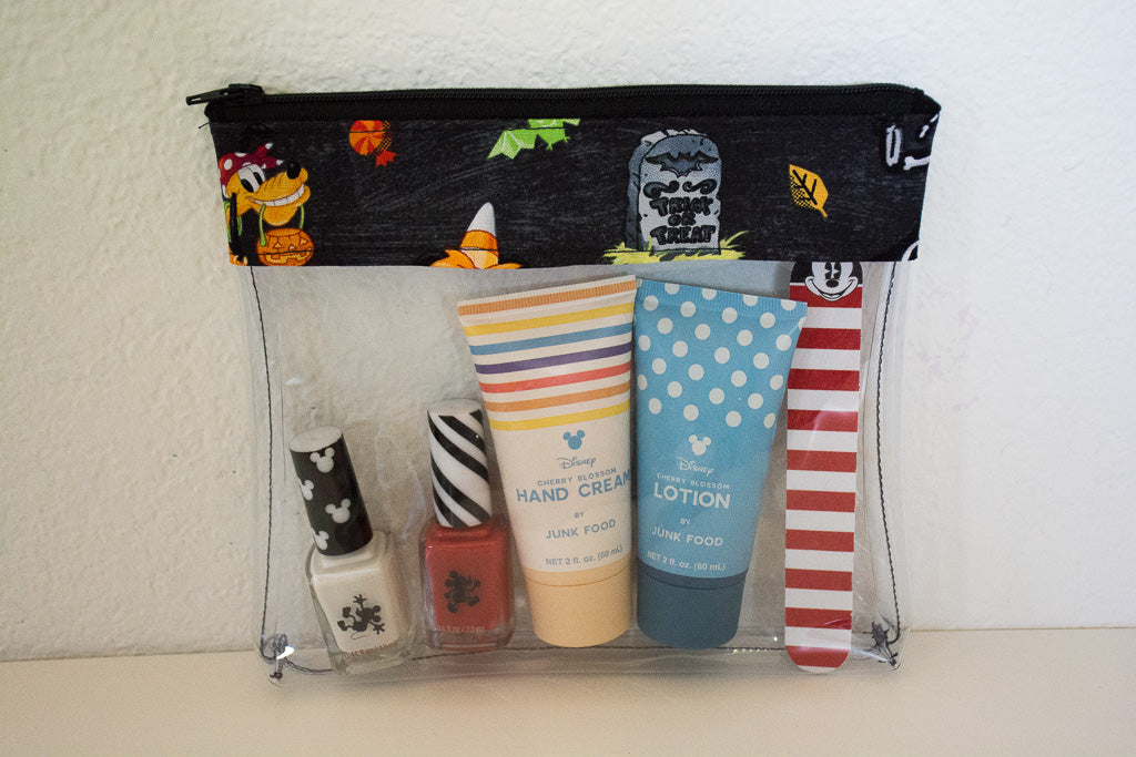 Feel confident while going through TSA security with this bag! It is compliant with airline regulations to hold the necessary liquids that you want to keep with you while on the plane. This see through bag is the perfect way to help get you organized for your Disney vacations. This clear bag is about 7.5 x 8.5 inches. It has a squared off bottom, which gives it flexibility to hold items of different shapes. This size makes it great as a small cosmetics bag to throw into a purse or backpack for those touch ups needed while on the go. It can also help organize essentials like travel-sized medicine, toiletries, or sunscreen.